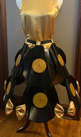 Her dress, 鈥淔or the Record,鈥 is a gold dress in which records are incorporated into the design.