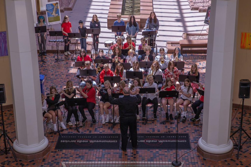 Waynesburg Central Elementary Band performs at state Capitol Building.