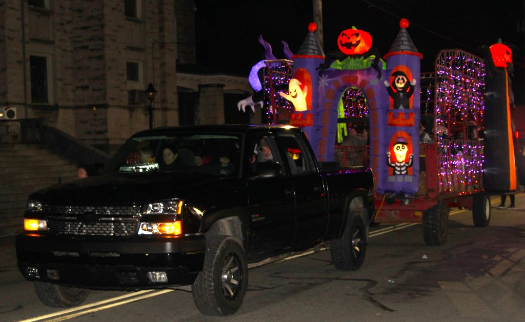One of the many floats rolls down Pittsburgh Street Tuesday during the Connellsville Halloween parade.