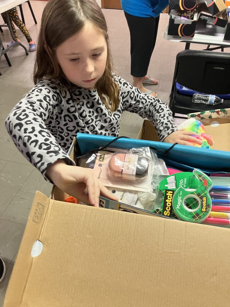 Each shoebox contained 20-25 items including school supplies, hygiene items, hair accessories and toys. The girls included a personal letter and a card with the hope the recipient will write back.
