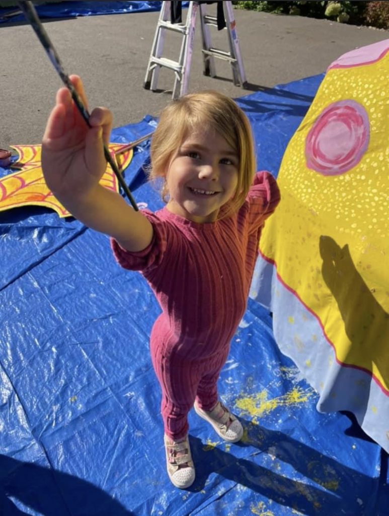 Stevie Jean Nesser, a student at R.W. Clark Elementary, paints some finishing touches on the puppetmobile.