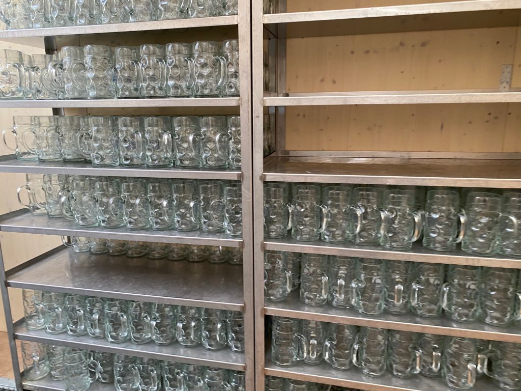 Yes, beer is big here. Not only are the steins big (called a 鈥渕ass鈥 here), holding an entire liter of beer, but the quantities consumed are vast. The Paulaner tent where we got a behind the scenes tour had three giant tanks holding 7,000 liters of beer each. They鈥檙e refilled daily by tanker truck bringing the special Oktoberfest beer directly from the brewery.