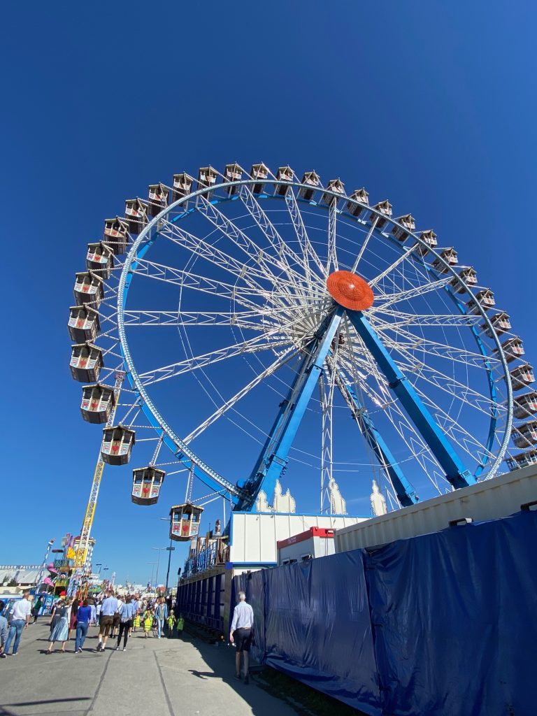 The Theresienweisse festival grounds themselves remind me of a huge state fairground complete with a roller-coaster, rides and even a Ferris wheel. What is astounding is that all of it 鈥 tents, rides, everything 鈥 is torn down at the end of Oktoberfest and rebuilt the next year. What starts as an empty field becomes Bavaria鈥檚 biggest construction project each July with several thousand workers spending more than 70 days to create the festival site that lasts only two weeks. But what a two weeks it is!