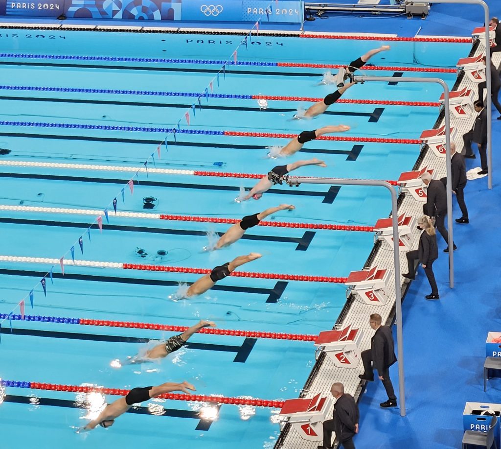 As he hit the final lap and swam to the finish line all alone, the crescendo by the screaming French fans’ was almost deafening and continued well after Marchand had touched the wall and broken Michael Phelps’ Olympic record (he had already eclipsed Phelps’ world record).