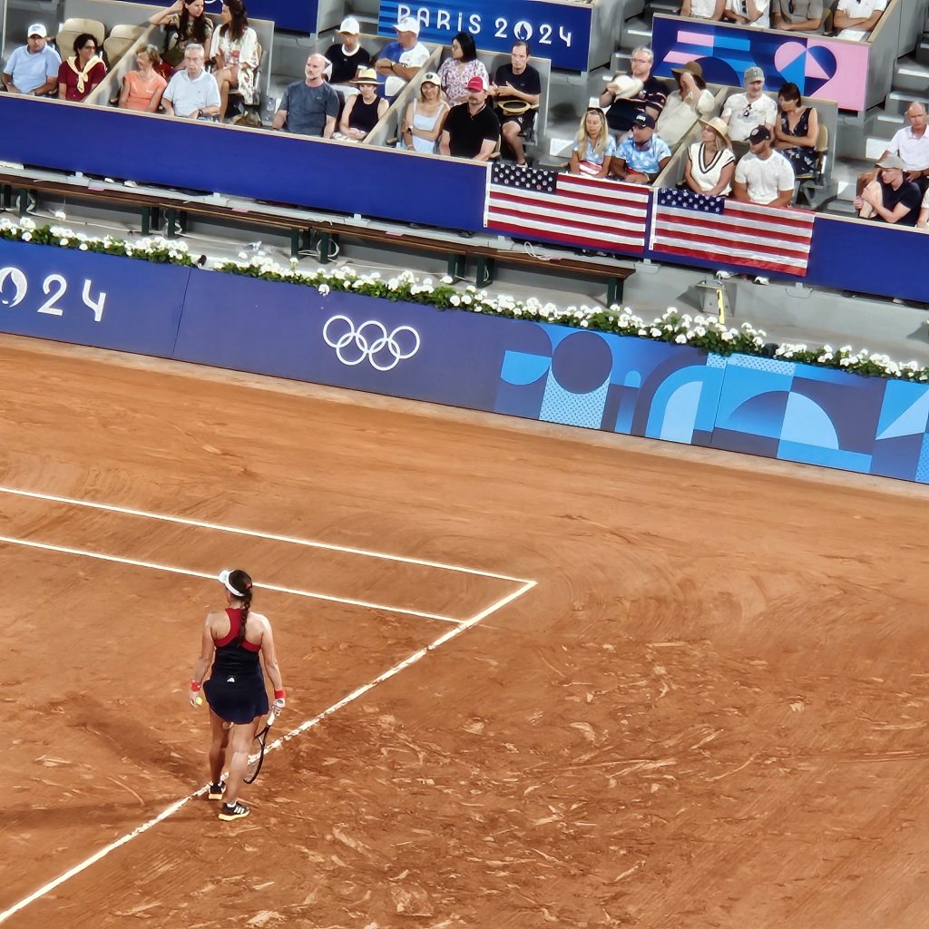 On this night, Spain’s Carlos Alcaraz bounced Tallon Griekspoor in straight sets, 6-1, 7-6, but he would go on to fall to Novak Djokovic, who he beat in the French Open final here earlier this year, in the gold medal match, 7-6, 7-6.