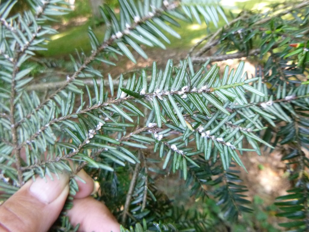 HWA insects probe hemlock needles with their sharp mouthparts and suck out the fluid. Heavily infested trees turn gray and pallid and die within a few years.
