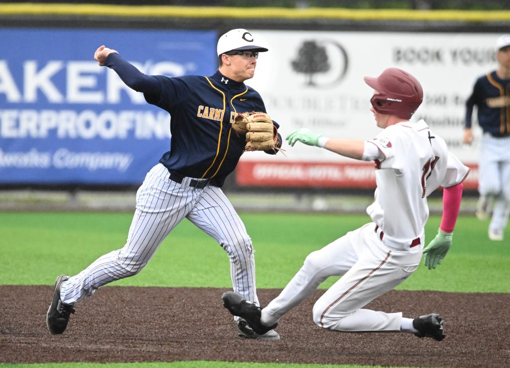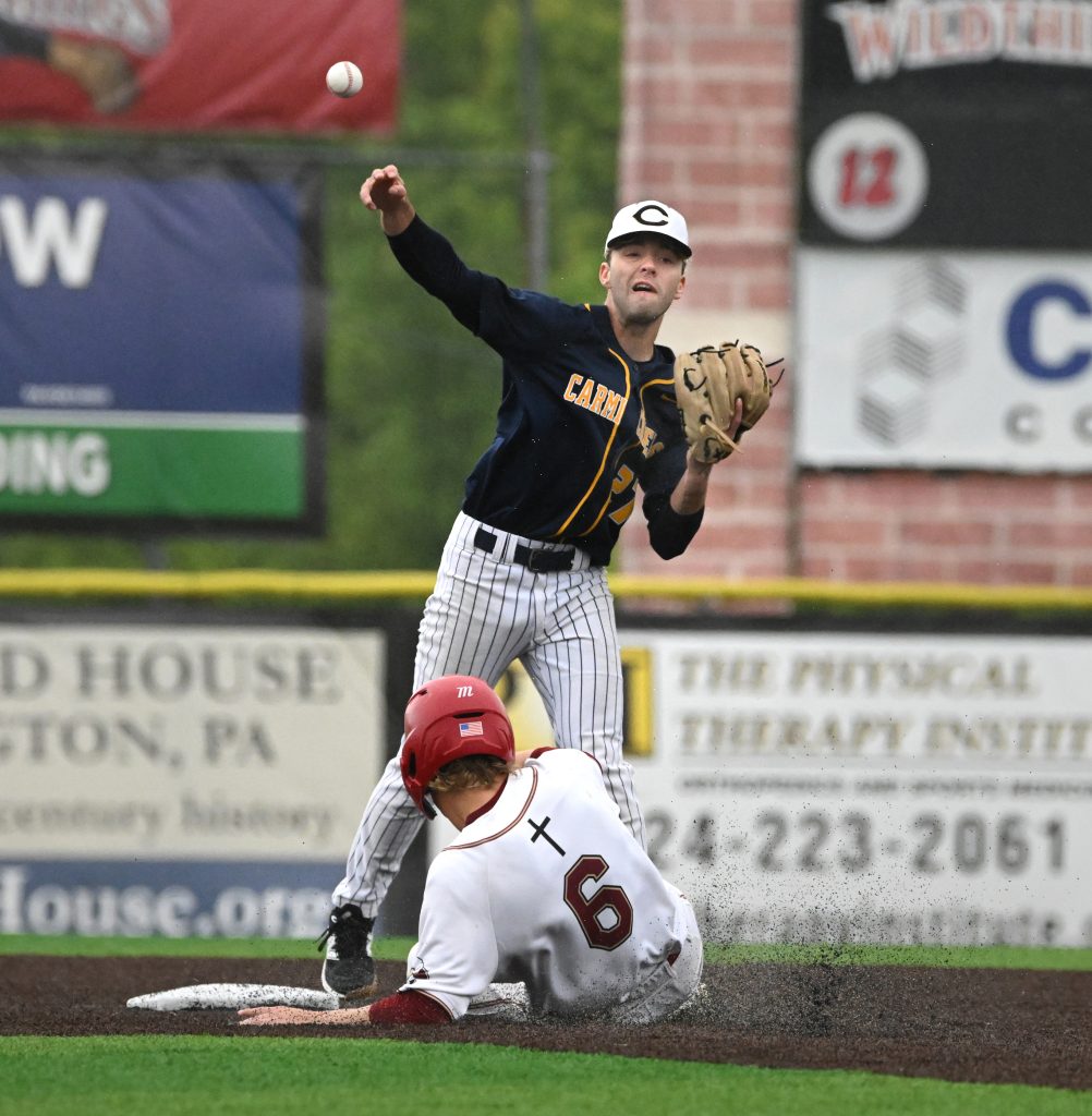 Serra made it 3-0 in the fourth. With the bases loaded and one out, Owen Dumbroski bounced into a run-scoring fielder’s choice against Carmichaels reliever Colin Andrews. Serra then executed a double steal, with Hann scoring, though Carmichaels had the play defended. Hann, however, beat the throw home from the Carmichaels shortstop.