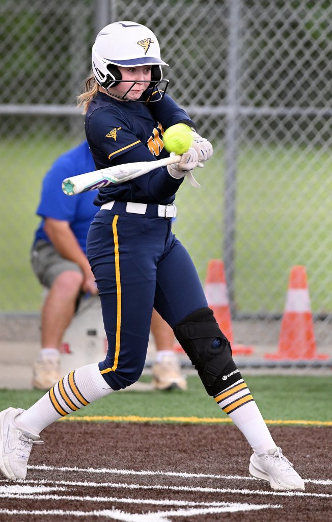 The Lady Mikes’ Avery Voithofer laced a double to right-center leading off the third, went to second on Payton Plavi’s ground out and scored on Staggers’ sacrifice fly for a 6-0 lead.