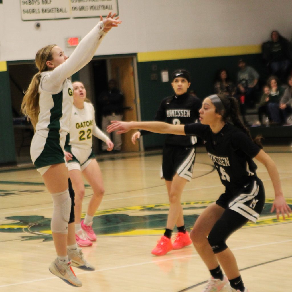 Larkin鈥檚 fastbreak layup made the score 43-36 with 4:36 left in the third quarter, but that鈥檚 as close as the Lady Gators would get with Monessen holding a 43-34 lead heading into the fourth quarter.