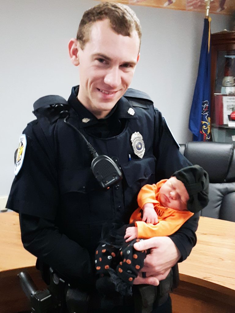 After they got home from the hospital last Friday, Jessica and Matthew took Poppy to Centerville police station to meet Talbert.