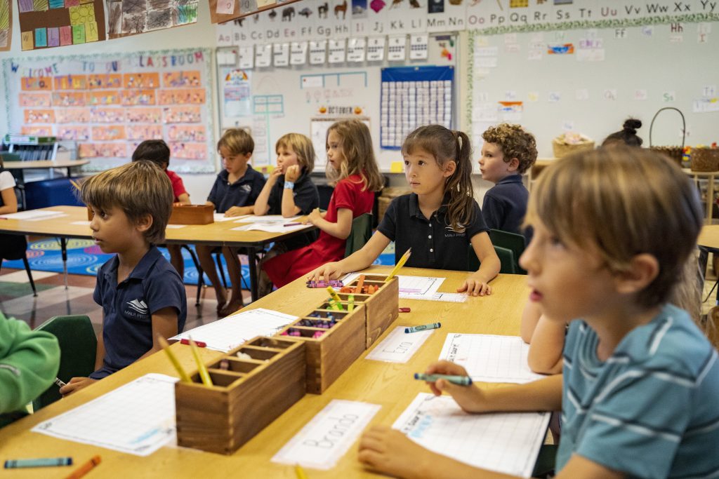 Maui Preparatory Academy students play in the classroom on Tuesday, Oct. 3, 2023, in Lahaina, Hawaii. At one point the academy had taken in about 150 public school students. The three public schools that survived the deadly August wildfire are set to reopen this week.