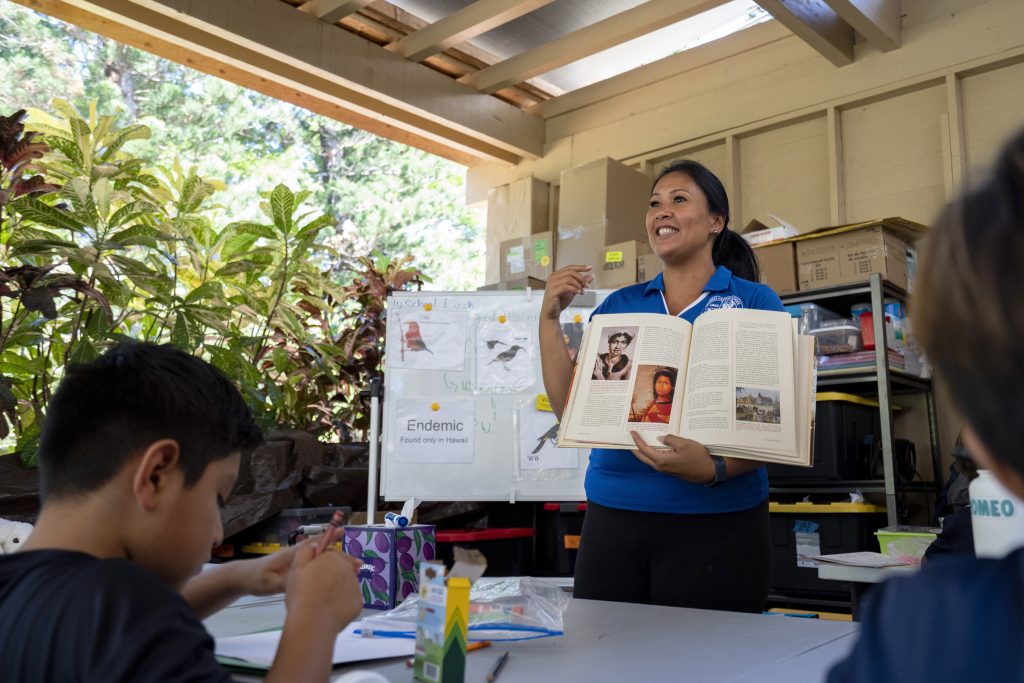 After the school closed, the program held classes outdoors, away from the burn zone, and focused on cultural learning such as making bamboo trumpets and working in taro patches.