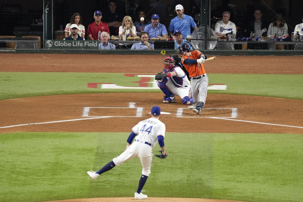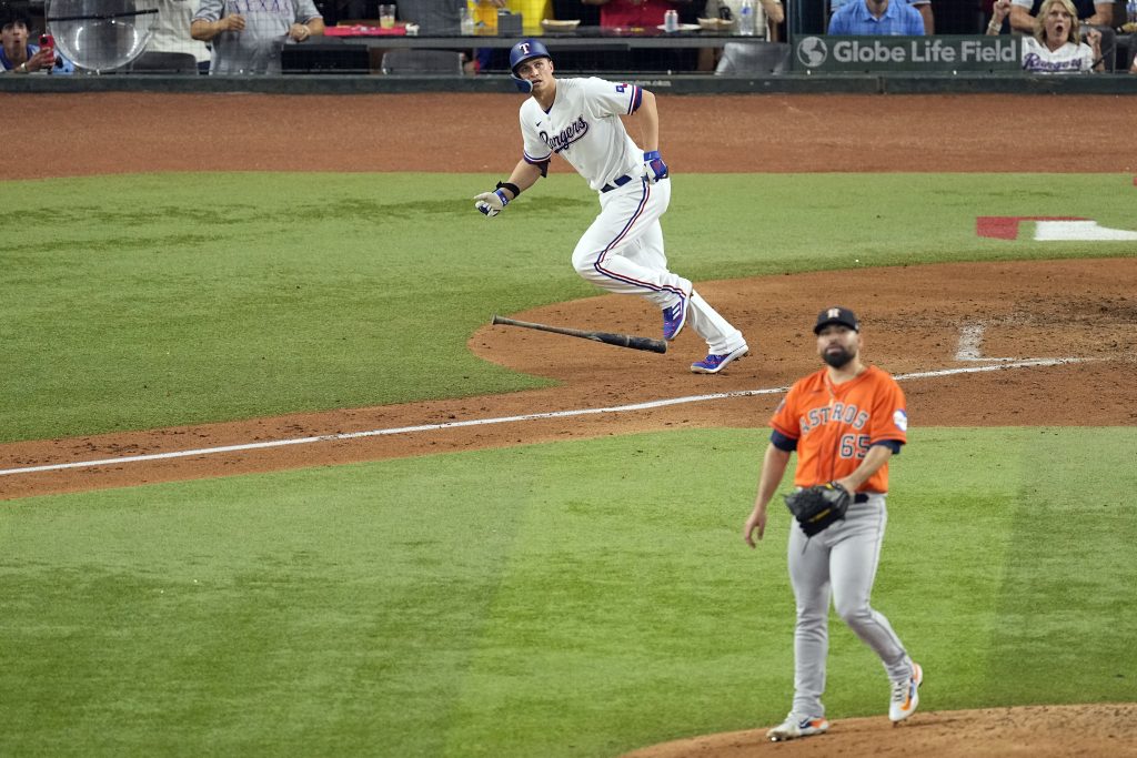 Seager became the first shortstop to homer in both the NLCS and ALCS with his 401-foot solo drive to left-center in the third. He was with the Los Angeles Dodgers when they played 16 neutral-site postseason games at Globe Life Field while winning the World Series title in 2020. Seager was MVP in both the NLCS and World Series. He hit five homers in that seven-game NLCS.
