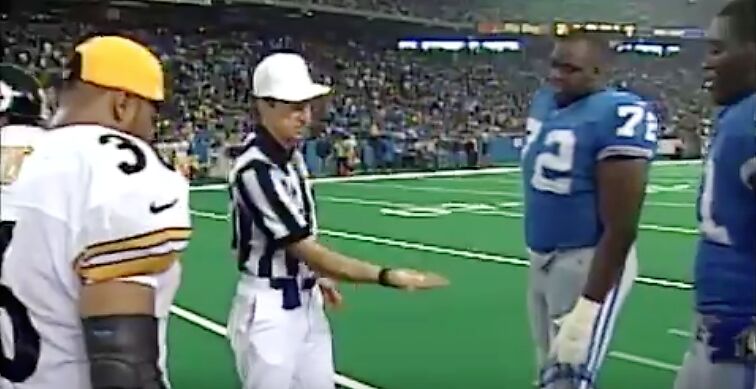 1998 鈥 I spent this Thanksgiving on the road in Anchorage, Alaska broadcasting Cincinnati Bearcats basketball in The Great Alaska Shootout, so I was watching this game from a hotel room. The Steelers and Lions were deadlocked after four quarters, 16-16, sending the game into overtime. As the team captains gathered at the center of the field, referee Phil Luckett asked the visiting Steelers to make the coin toss in the air to determine who would have possession. Pittsburgh鈥檚 Jerome Bettis clearly said 鈥渢ails,鈥 but Lockett heard 鈥渉eads,鈥 and when the coin came up tails, he awarded the ball to the Lions. Pittsburgh and Bettis argued to no avail, and subsequently watched the Lions march down the field behind Charlie Batch and some nifty running by Barry Sanders, resulting in a game-winning field goal by Jason Hanson for a 19-16 Lions victory. This also put a damper on Thanksgiving dinner!