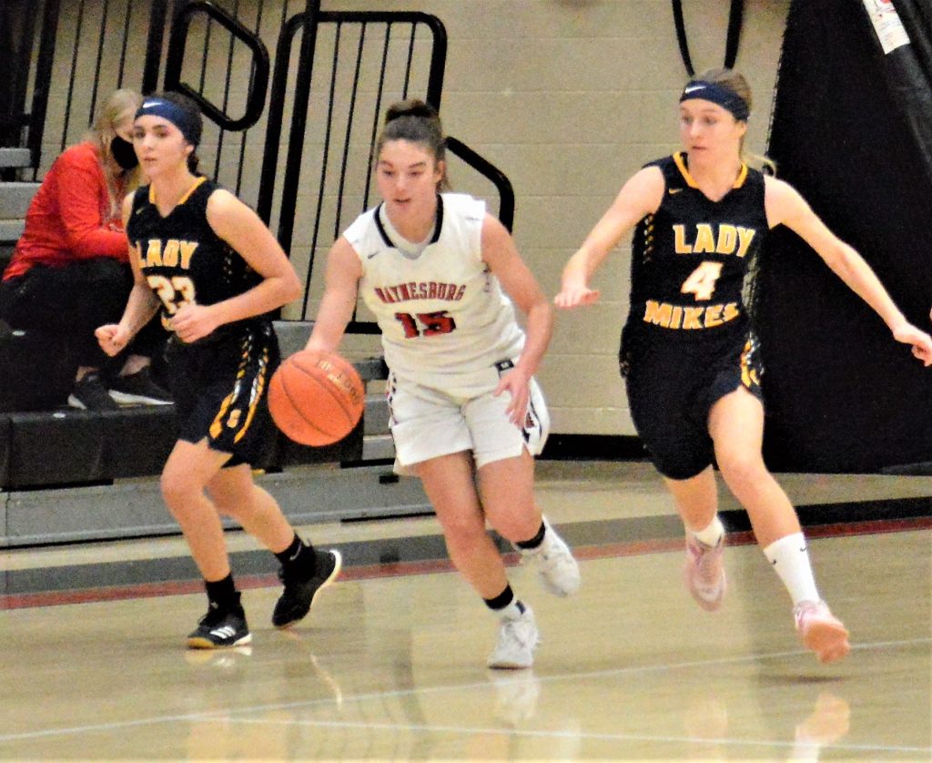 A bright spot for the Lady Mikes was Mia Ranieri who made a 3-pointer and all six of her free throws in scoring 11 points before fouling out.