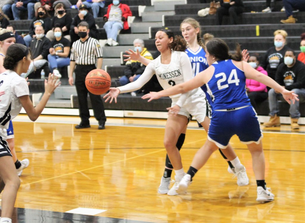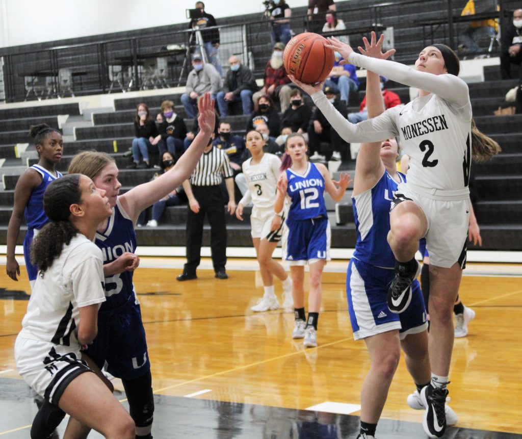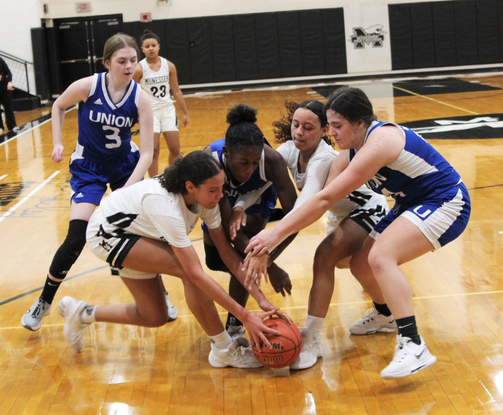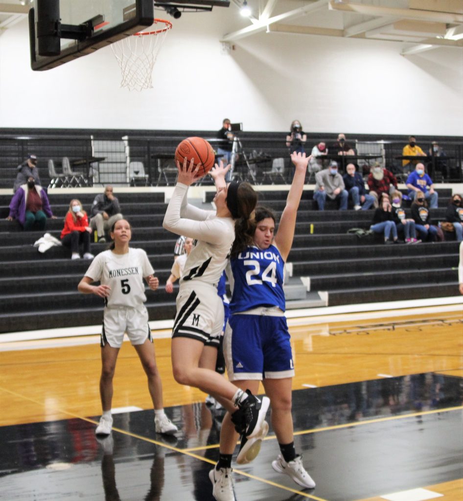 Both teams had their small benches taxed with foul trouble. Union and Monessen both had five girls with at least three fouls.
