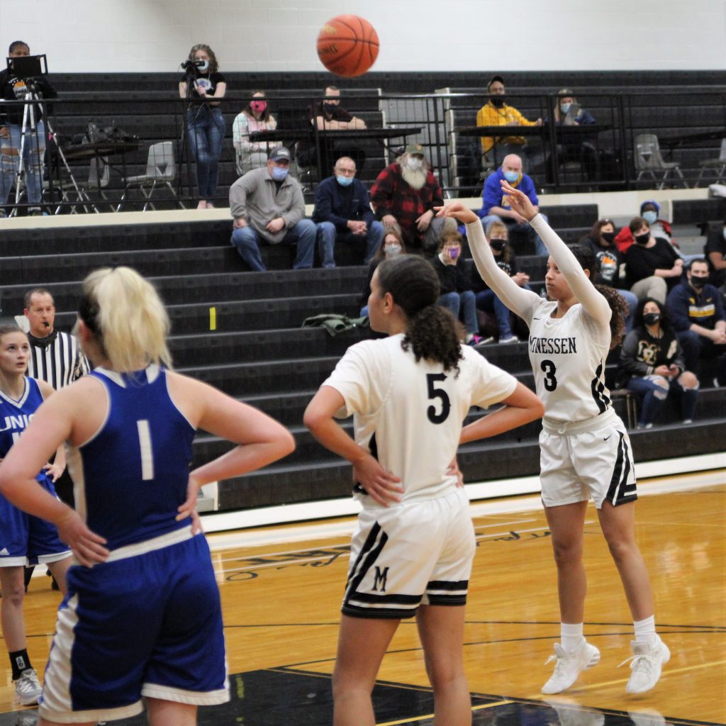 Union packed in a zone defense throughout the game, closing down driving lanes and forcing the Lady Greyhounds to shoot from outside and take contested shots in the lane.
