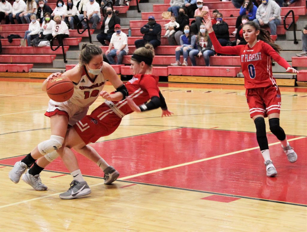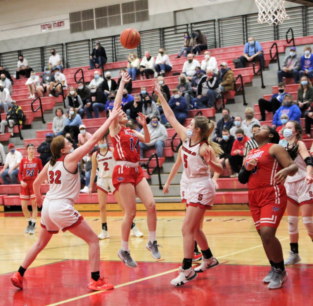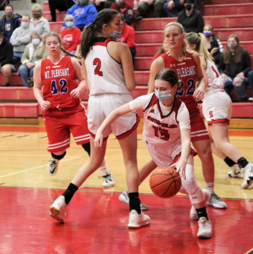 Southmoreland hit the offensive boards well and limited Mount Pleasant opportunities for second-chance points on their defensive end.