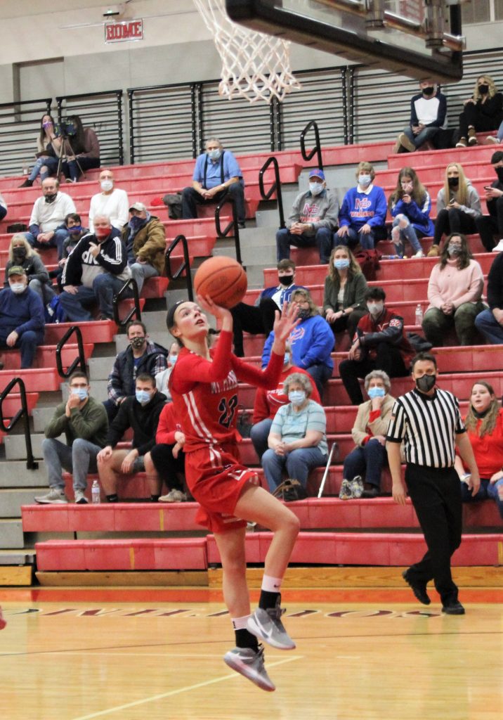 The Lady Scots鈥 trio of Maddie Moore, Olivia Cernuto and Gracie Spadaro were tough to handle for the Lady Vikings鈥 defense. The three combined for 43 points, led by Moore鈥檚 game-high 17 points. Cernuto finished with 15 and Spadaro added 11.