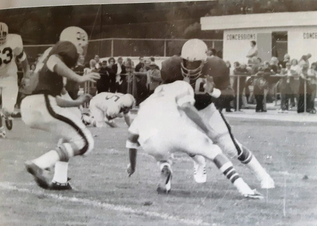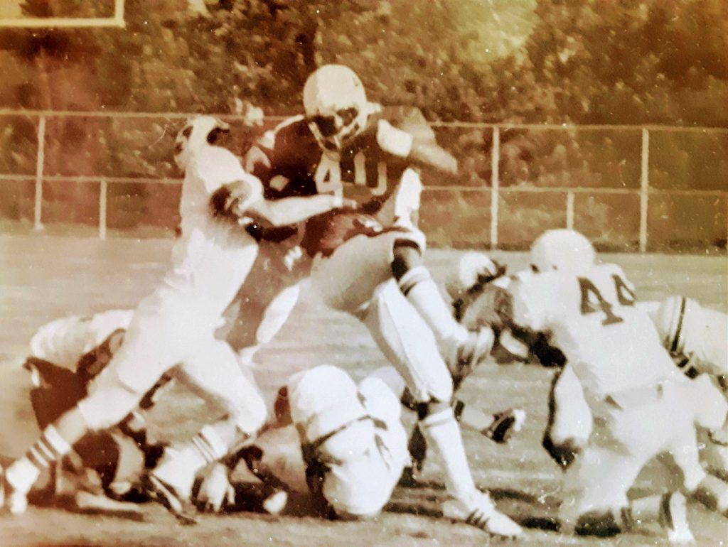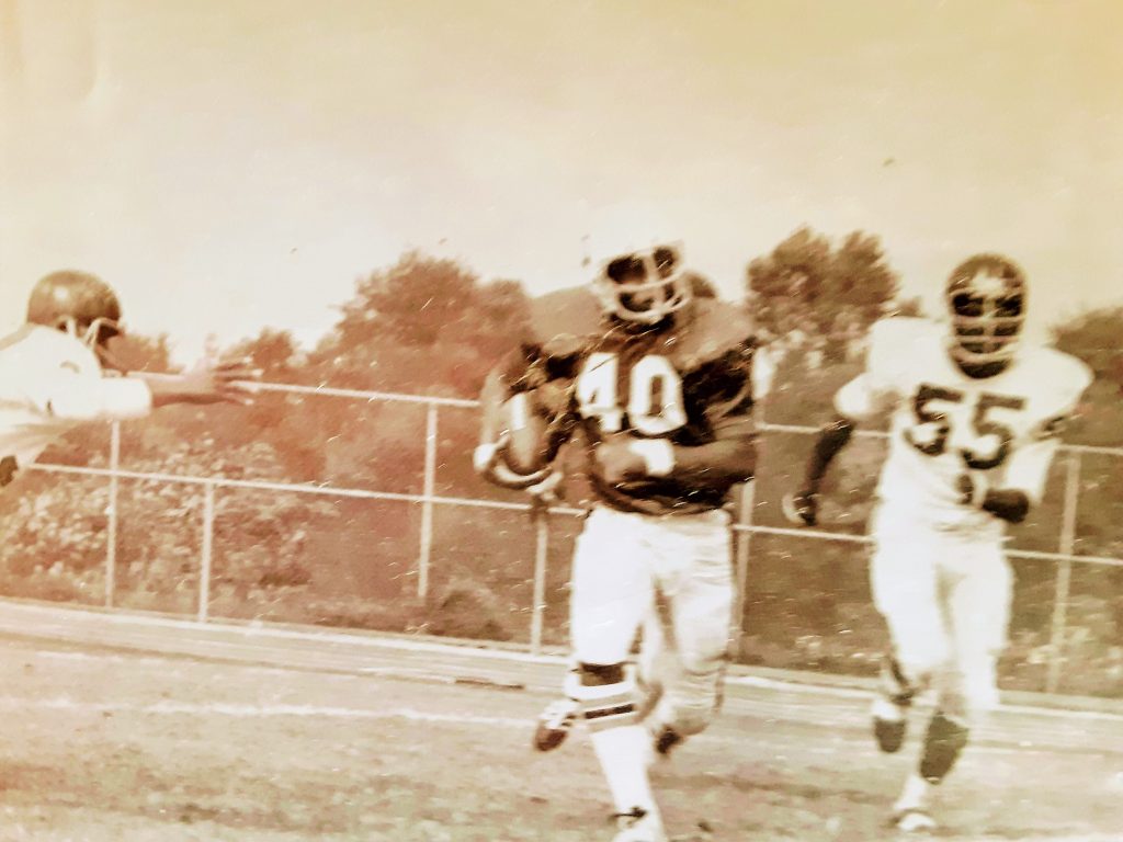 “My playing time at running back went up from there. Even though I became the top running back I never left the field, continuing to play defensive back. The team in 1971 had 13 seniors and we had been playing together since ninth grade and 11 of us played a whole lot of ball when we were sophomores. We had a good team, those two losses were real tough losses.”