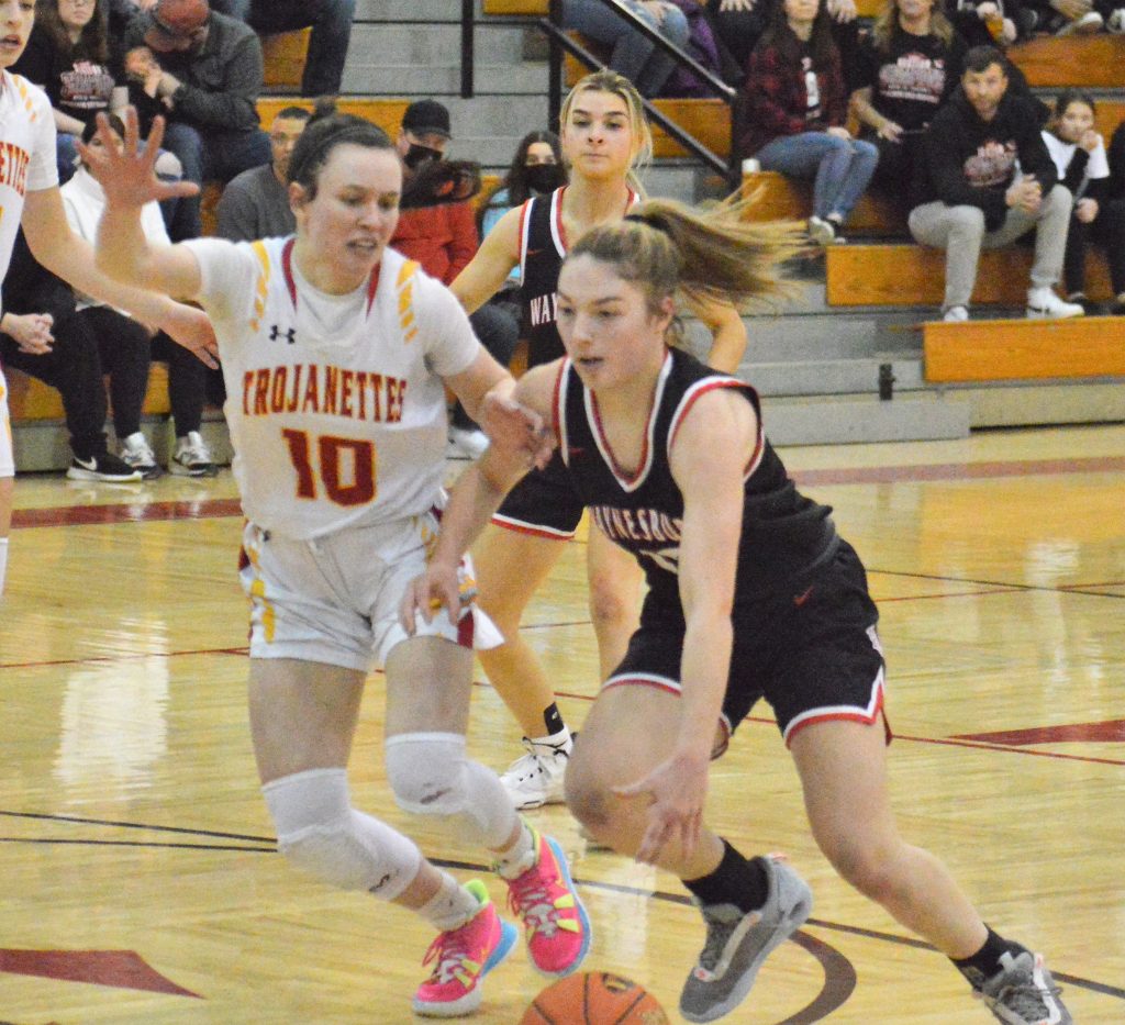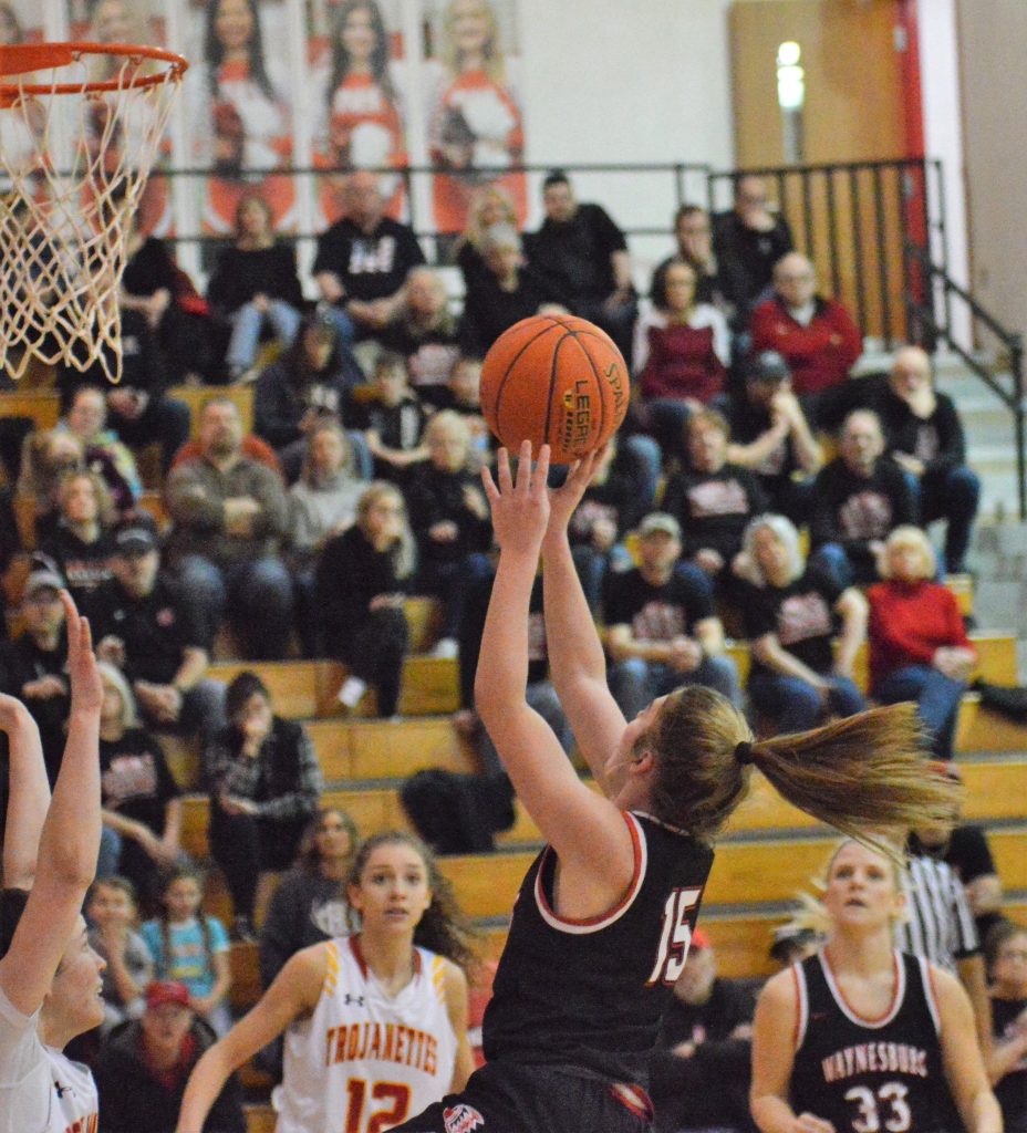 The Trojanettes outscored Waynesburg 14-2 the rest of the quarter to go up 26-10 at halftime and were never threatened again.