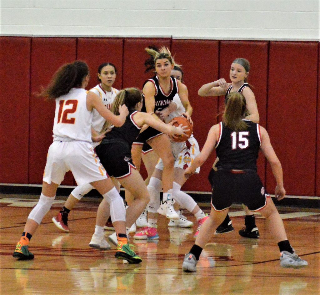 The main highlight of the final frame for the Trojanettes was a basket by Anastasia Peterson.