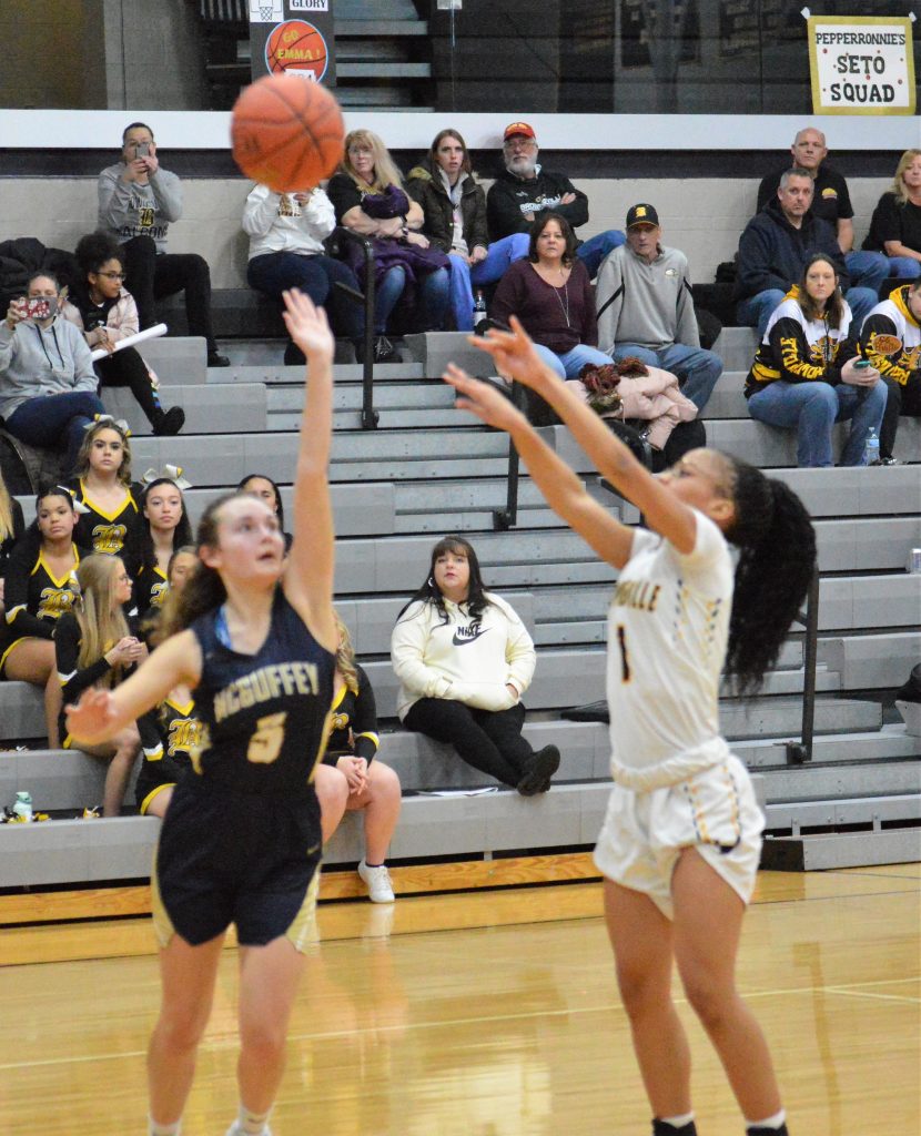 Taylor Schumacher led McGuffey with 12 points and Claire Redd followed with 11.