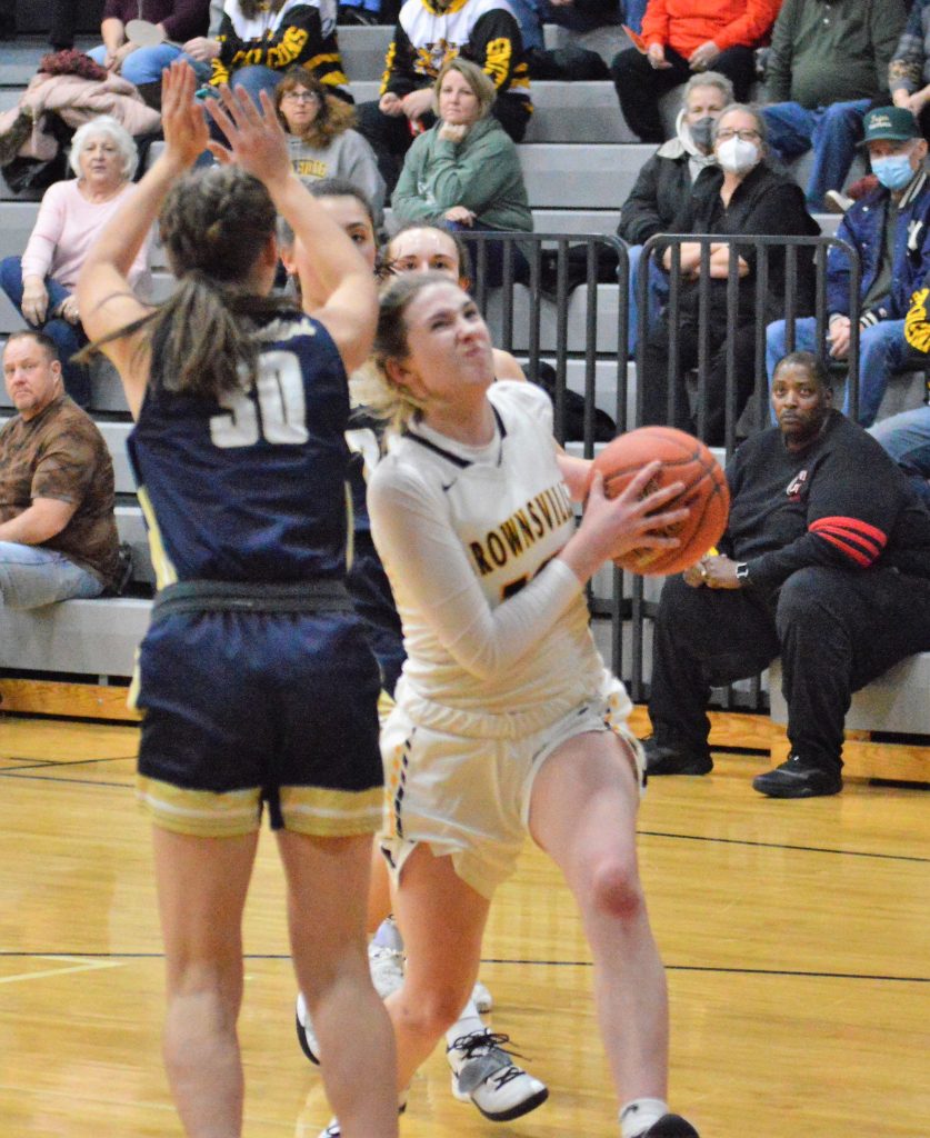 Brownsville got strong performances from Meghan Velosky and Zhariah Reed who scored 14 and 13 points, respectively. Velosky swished four 3-pointers and Reed added two treys, including a clutch one in the final minutes.
