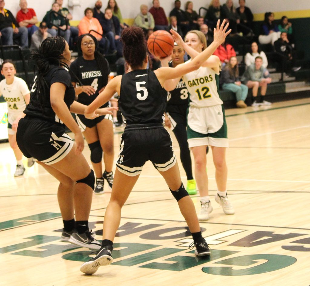 Monessen鈥檚 defense harassed the Lady Gators, giving freshman Emma Larkin few 3-point opportunities and making her work on drives through the lane. Larkin finished with a game-high 16 points.