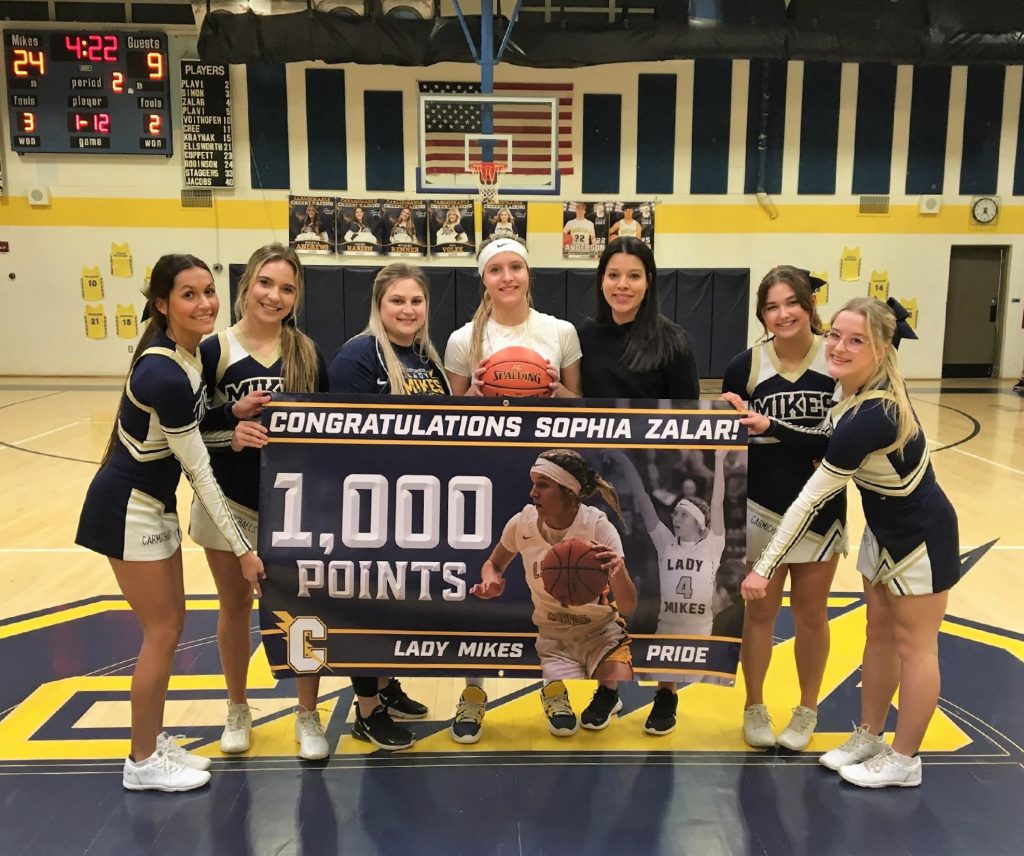 Zalar made a layup and converted one of two foul shots to push her total up to 12 early in the second quarter, then hit the milestone in spectacular fashion, taking a pass from Alyna Simon and swishing an NBA-range 3-pointer with 4:22 left in the half to give her 1,001 career points.