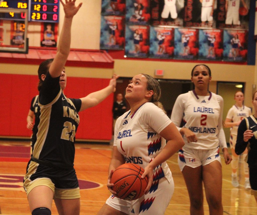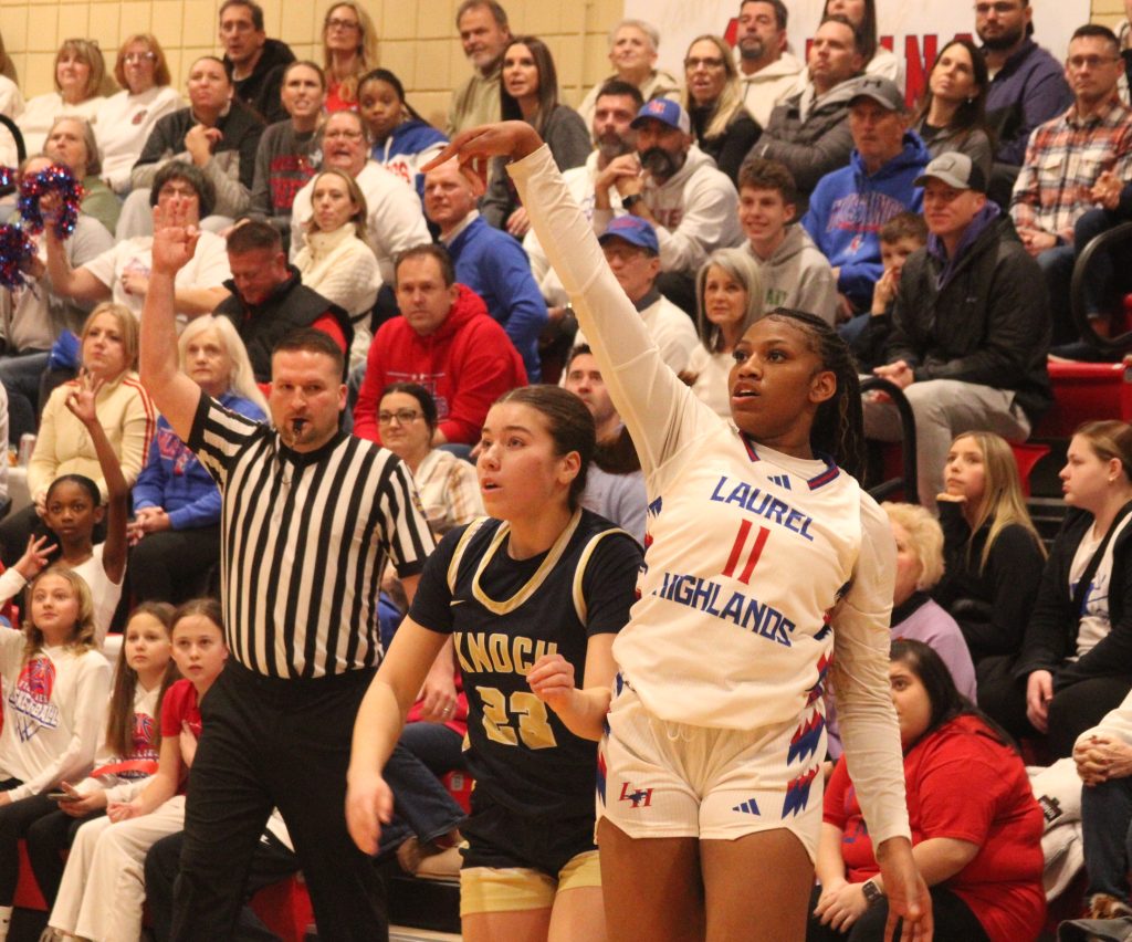 Karlee Buterbaugh ended Laurel Highlands鈥 run with a basketball at 3:10 of the first period. Buterbaugh, who was the lone senior on Knoch鈥檚 roster, shared game-high scoring honors with Harris, as she scored 16 points on four field goals, including three from behind-the-arc, and she was 5 of 8 at the foul line.