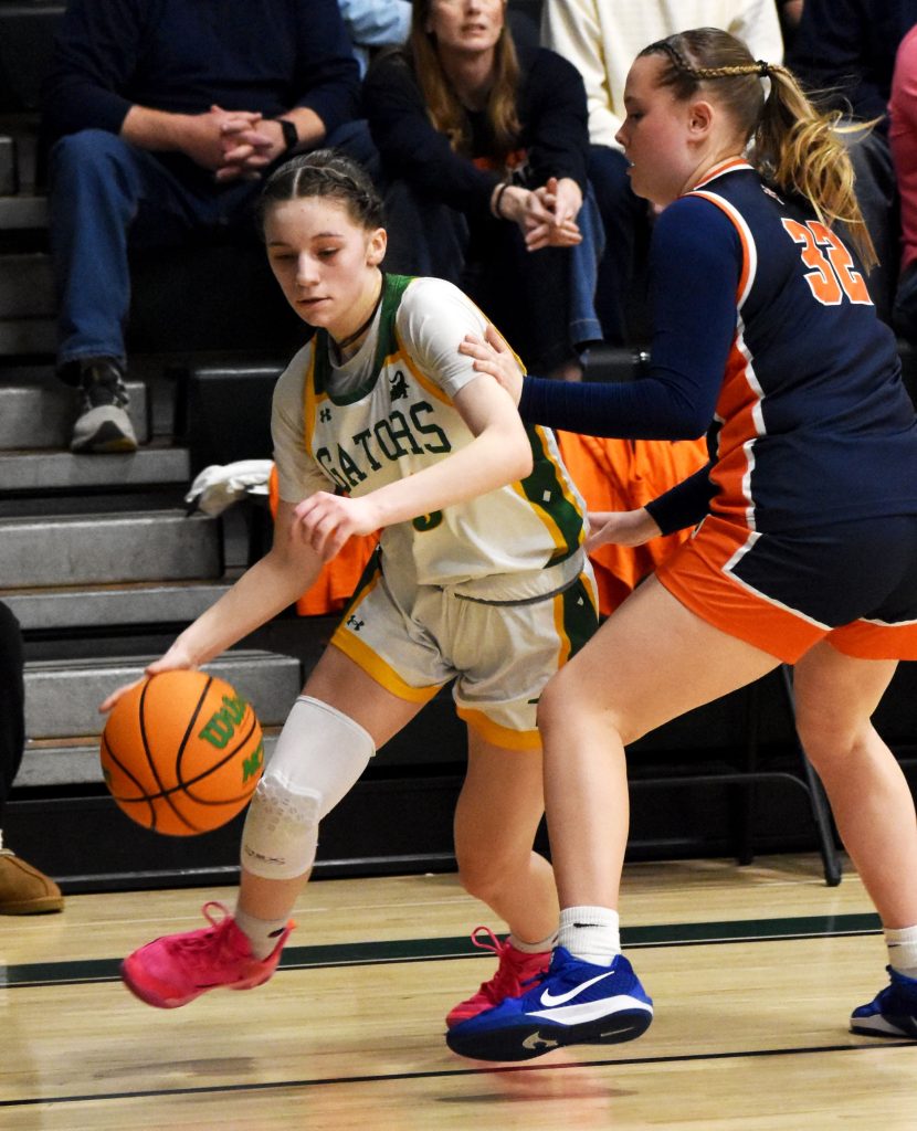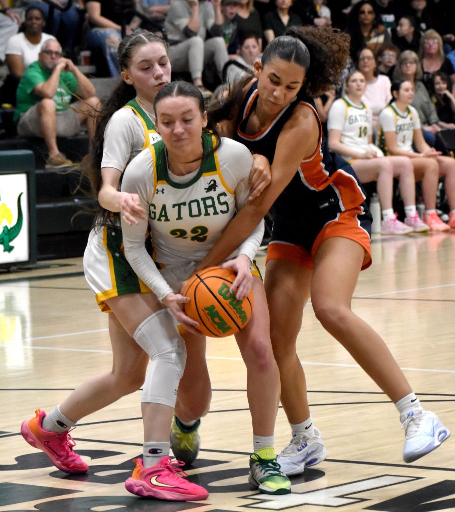 The much smaller Lady Gators were forced to heave shots from the outside and did sink five 3-pointers in the frame with Emma Larkin hitting three in a row at one point, along with a pair of free throws, and Morgan swishing a pair of treys.