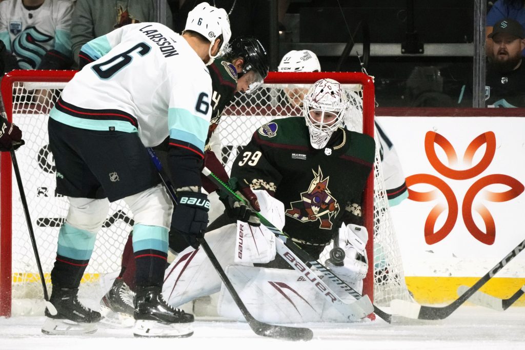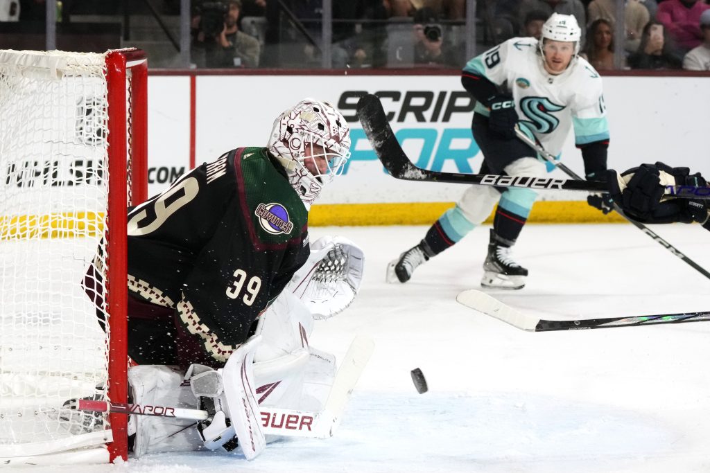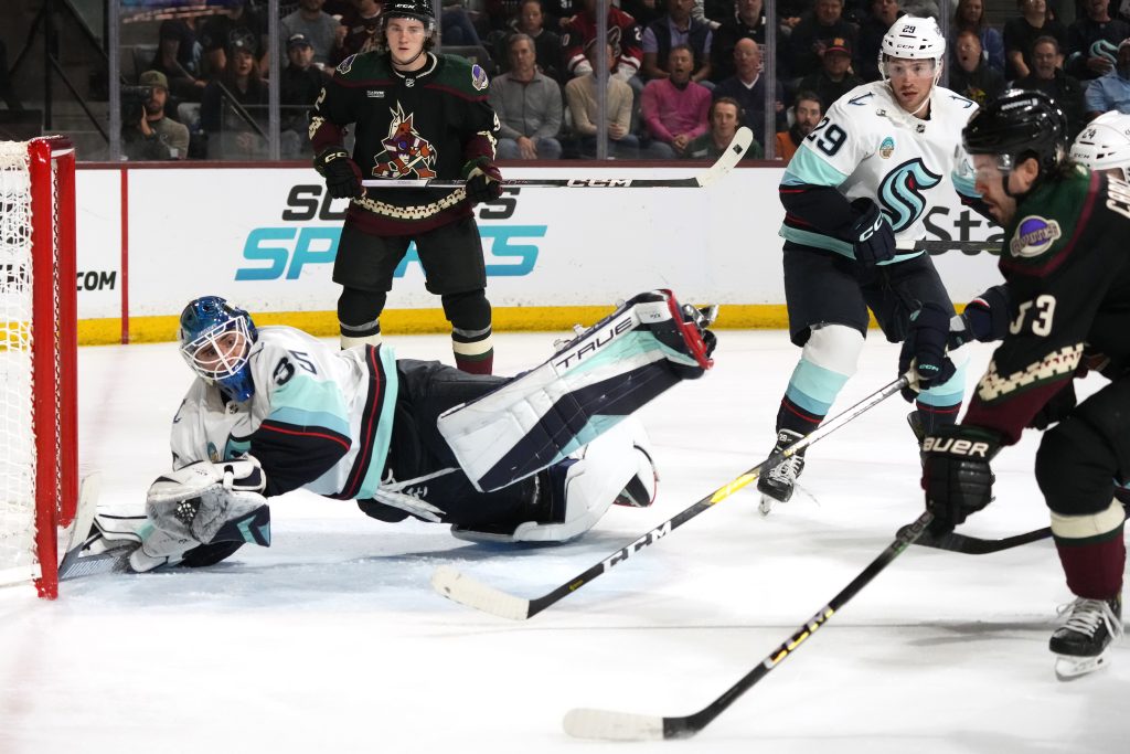 Coyotes goalie Connor Ingram, who made 35 saves, stopped Matty Beniers on a breakaway with 1:06 remaining in regulation. Beniers, who won the Calder Trophy with 24 goals as a rookie last year, has not scored in 13 games this season.