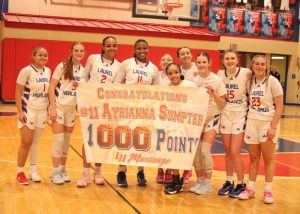 That is all it took Ayrianna Sumpter to score the five points she needed to reach the 1,000-point club Monday night in Laurel Highlands’ 73-25 victory over Ringgold in Section 3-4A play at Harold “Horse” Taylor Memorial Gymnasium.