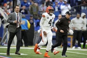 INDIANAPOLIS (AP) 鈥 Cleveland Browns quarterback Deshaun Watson made his first start in nearly a month Sunday.He spent the final three quarters in Indianapolis <a href="https://twitter.com/i/status/1716148167115145689">watching from the sideline, again,</a> and now ...