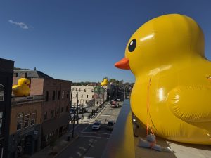 Wednesday night into Thursday, 14-foot-tall inflatable rubber ducks sprung up on the rooftops of businesses along Pike Street in what Grandpa Joe鈥檚 owner Christopher J. ...