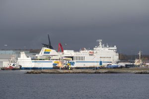 Ferry that ran aground and leaked oil off Sweden’s coast is towed back into a harbor
