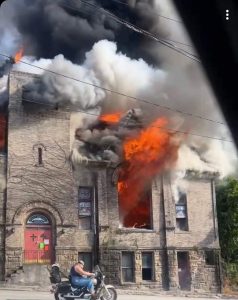 Brownsville Fire Company Chief Richard Black said firefighters were dispatched shortly after 5:30 p.m. to the old First Baptist Church at 128 Market St.