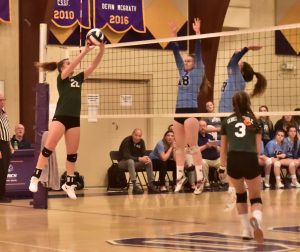 CORAOPOLIS — Geibel Catholic became the first WPIAL Class A team to take a set from Bishop Canevin this season, but the top-seeded Lady Crusaders were able to overcome a rare bout of adversity in a 3-1 victory on Thursday in the semifinals of the WPIAL Class A playoffs at Our Lady of the ...