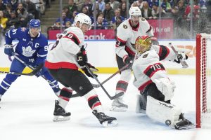 TORONTO (AP) — Claude Giroux had two goals and an assist as the Ottawa Senators scored three times in the third period to beat the Toronto Maple Leafs 6-3 on Wednesday night and pick up just their second victory in three weeks.Giroux voiced frustration with fans and media some 24 hours ...