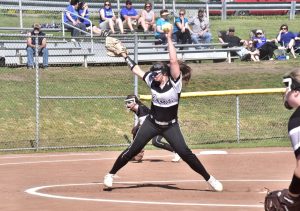 Maddy Hershberger threw a two-hit shutout and also have a three-run triple, as Albert Gallatin scored six runs in the sixth inning for a 6-0 Section 1-AAAAA victory over Connellsville on Wednesday at Albert Gallatin Area High School.The Lady Colonials, who are fighting for their playoff lives, ...