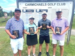 The Tri-County Athletic Directors Association (TriCADA) held its annual golf scramble recently. The winner of the event, held at Carmichaels Golf Club, was the team of (from left) Dave Briggs, Remmey Lohr, Chris Barrish and Liam Lohr.